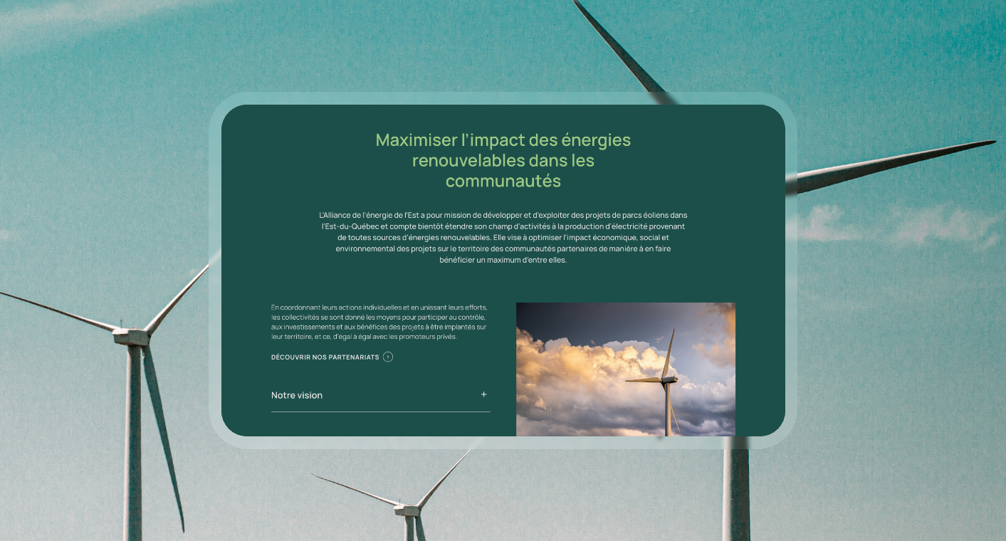 Lorsqu’on a la chance de créer le tout premier site Web d’une entité avec une mission aussi admirable que celle de l’Alliance de l’énergie de l’Est, axée sur la construction d’un avenir vert et durable, nous disons OUI !