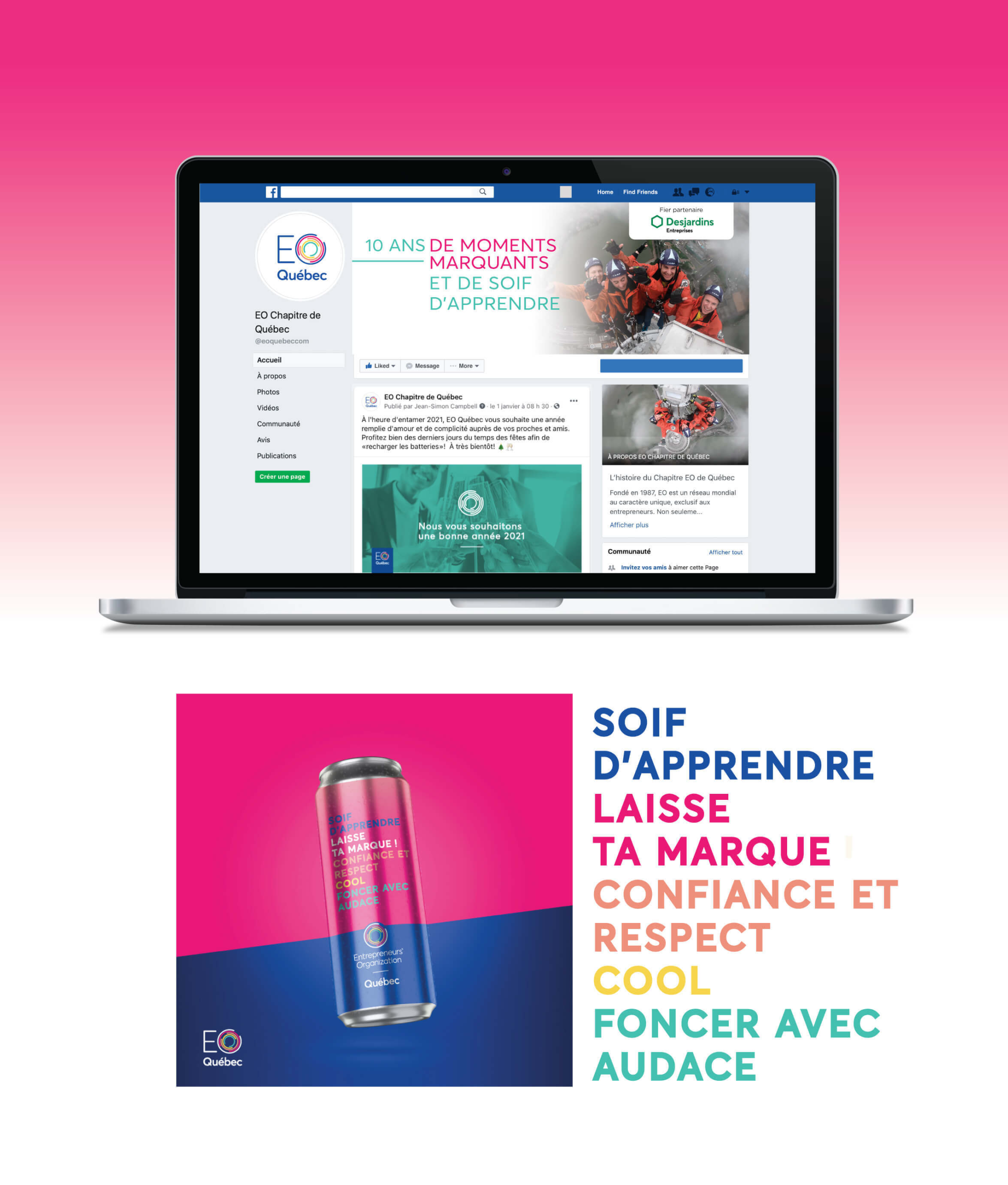 À titre de partenaire aux communications d’EO Québec, DACTYLO est responsable de mener la barque des médias sociaux et des outils de communication de l’organisation. L’Agence s’occupe, entre autres, de créer des éléments graphiques renversants, de gérer la page et le groupe Facebook de l’organisation et de bâtir et transmettre une infolettre mensuelle qui a du punch! Dans son rôle de conseillère et d’exécutante, DACTYLO est la valeur ajoutée qui travaille de façon soutenue afin de permettre à EO Québec de rayonner à son plein potentiel.