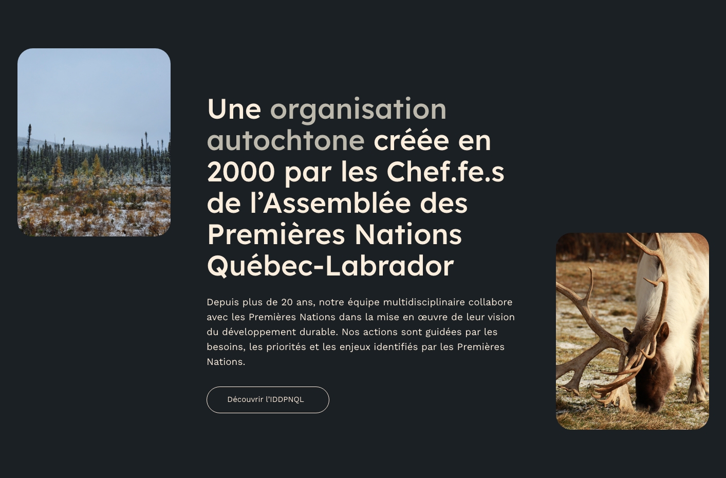Nous avons également conçu un tout nouveau site Web qui met de l’avant leur nouvelle identité graphique. L’accent a été mis sur l’amélioration de la navigation du site pour une expérience utilisateur optimisée, ainsi que sur la possibilité d’une gestion autonome par les membres de l’IDDPNQL. Bien que le site soit principalement vitrine, il représentait tout de même un projet d’envergure nécessitant une refonte complète de l’architecture de la plateforme.