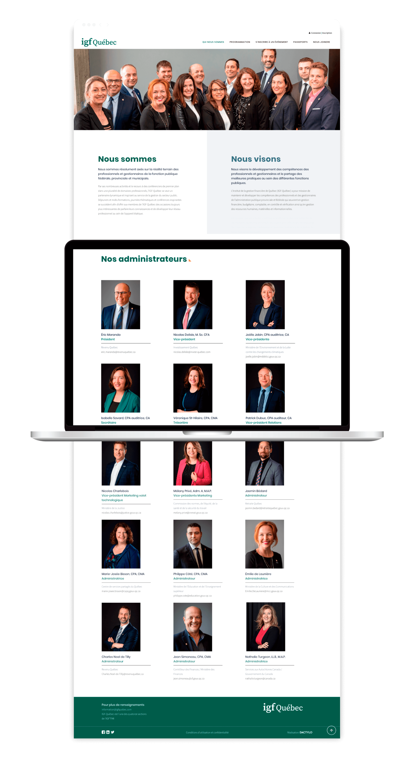 Une confiance réitérée et un site Web à la hauteur des aspirations de l’organisation. Peu de temps après la conclusion du mandat de communication stratégique accordé à DACTYLO, l’IGF-Québec réitère sa confiance envers l’Agence en la mandatant dans la mise sur pied de son nouveau site Web. Création d’un visuel enivrant, mise en place d’une zone client et d’un espace transactionnel, liaison du nouveau site Web à la base de données de l’organisation : DACTYLO allie rigueur et flexibilité tout au long de ce deuxième mandat afin de doter l’Institut d’une plateforme en ligne au goût du jour qui ne laisse aucun doute quant à son caractère actuel et à la pertinence de sa programmation!