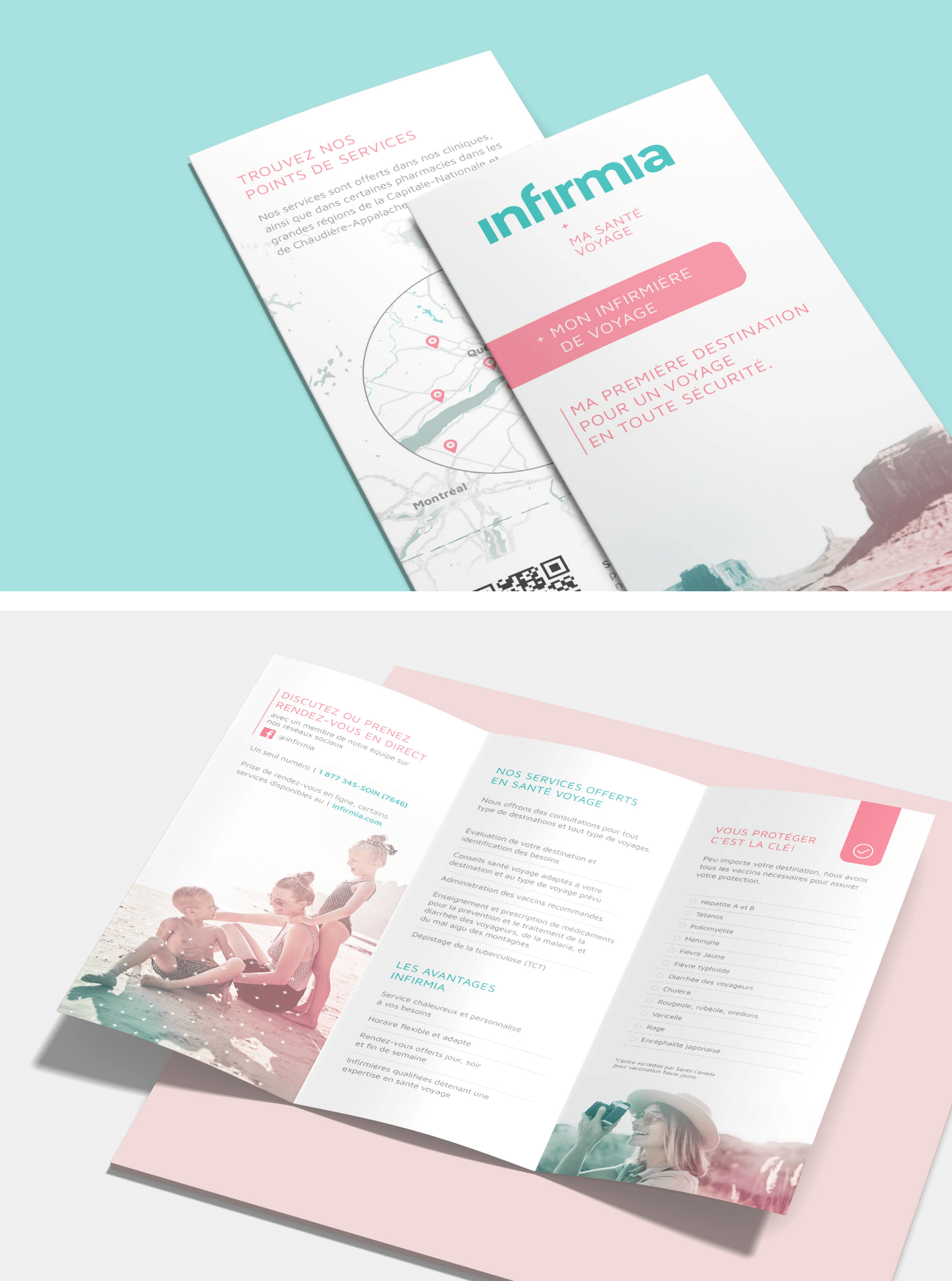 Désirant se munir de divers outils de communication destinés à être remis à sa clientèle à des fins d’informations et de prévention, Infirmia a retenu nos services pour la création et la mise en place de ceux-ci.