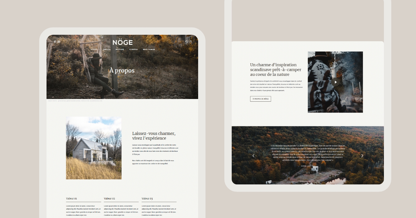 Souhaitant profiter d’une plateforme Web complète et sophistiquée, la direction de Nöge a réitéré sa confiance envers DACTYLO pour la création d’un nouveau site Web transactionnel. Assurant une continuité avec la signature graphique de l’ancien site vitrine conçue par l’Agence lors d’un précédent mandat, l’équipe a su recréer un site Web qui met en valeur l’un des secrets les mieux gardés au Québec!