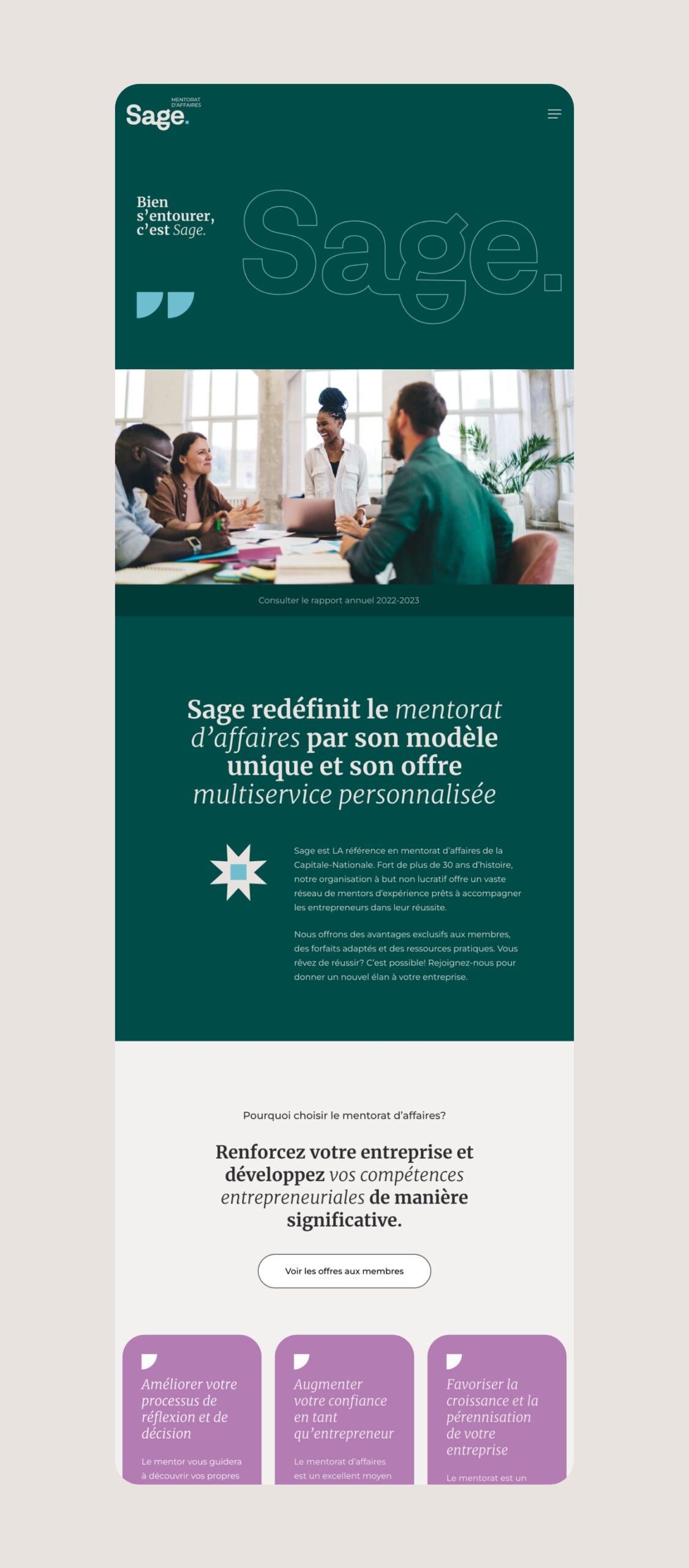 Afin de présenter de manière exhaustive ses services, ses offres et surtout, ses nombreux mentors, Sage a confié à DACTYLO la mission de lui créer un tout nouveau site Web vitrine.