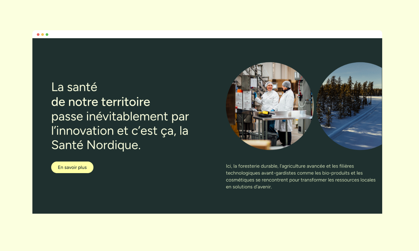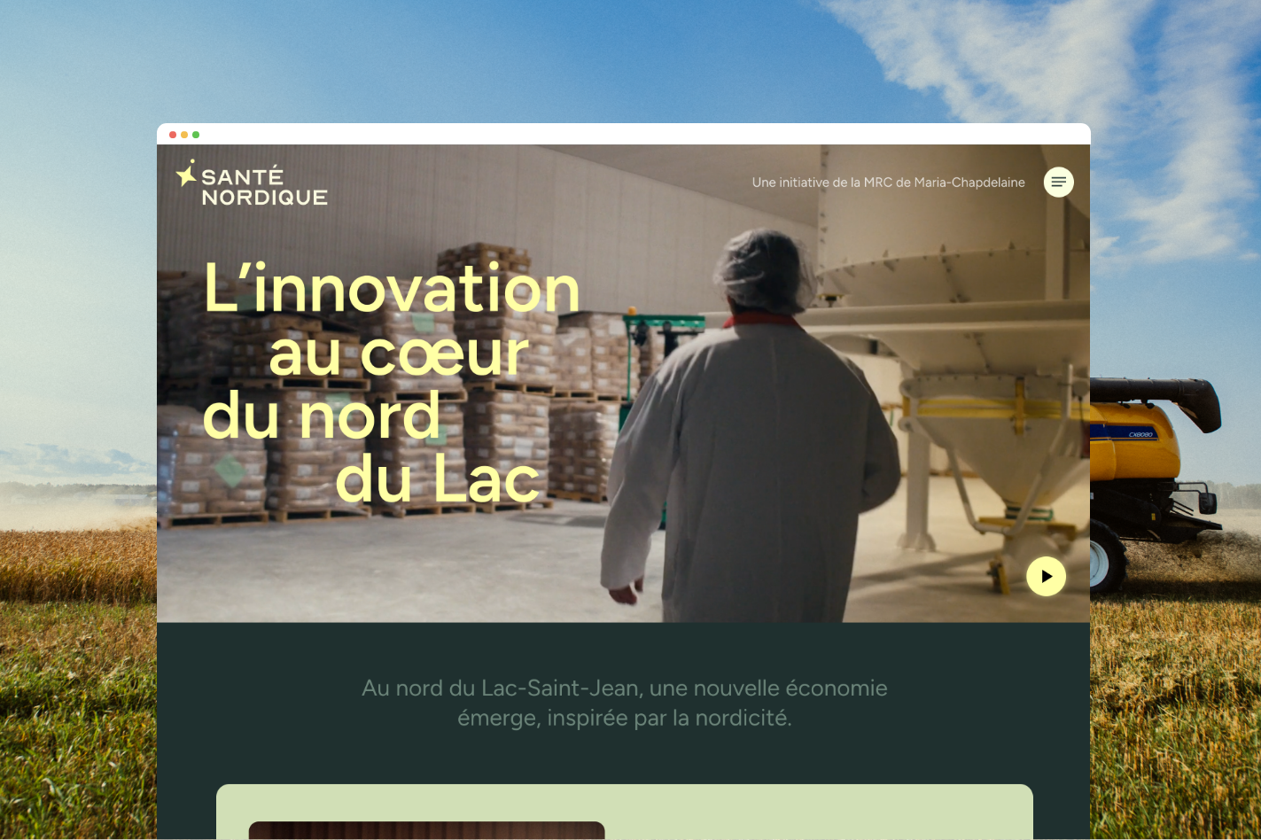 Santé Nordique est une initiative de la MRC de Maria-Chapdelaine qui vise à propulser le développement économique du nord du Lac-Saint-Jean en misant sur l’innovation industrielle. En mettant en lumière les secteurs porteurs et les ressources locales, Santé Nordique aspire à faire du territoire un pôle stratégique pour les investisseurs et les entrepreneurs. Le projet visait à soutenir une ambition forte : positionner la MRC de Maria-Chapdelaine comme un pôle d’innovation industrielle au nord du Lac-Saint-Jean.