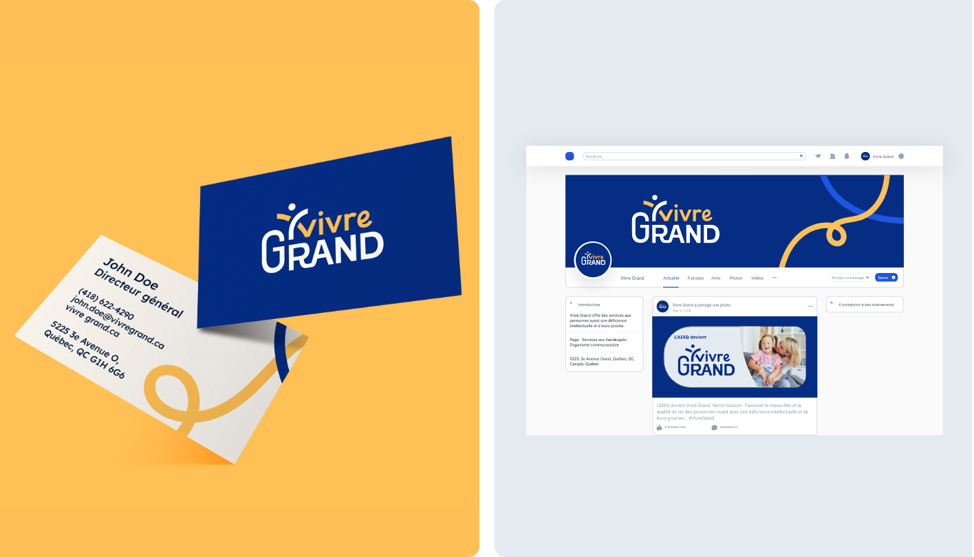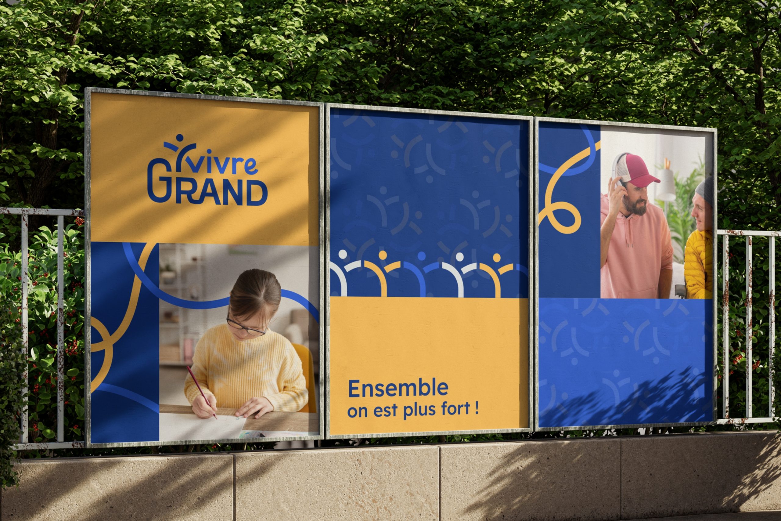 Un site Web entièrement repensé et intuitif a également été créé pour mettre en lumière les services essentiels et les ressources de Vivre Grand. Ce site offre une navigation fluide et accessible à tous les publics, renforçant le lien entre l’organisation et sa communauté. Pour accompagner ce déploiement, un plan de communication stratégique a été élaboré, incluant des campagnes publicitaires ciblées, des publications engageantes sur les réseaux sociaux, et des outils de communication adaptés, assurant une transition harmonieuse et un impact durable de cette nouvelle identité.