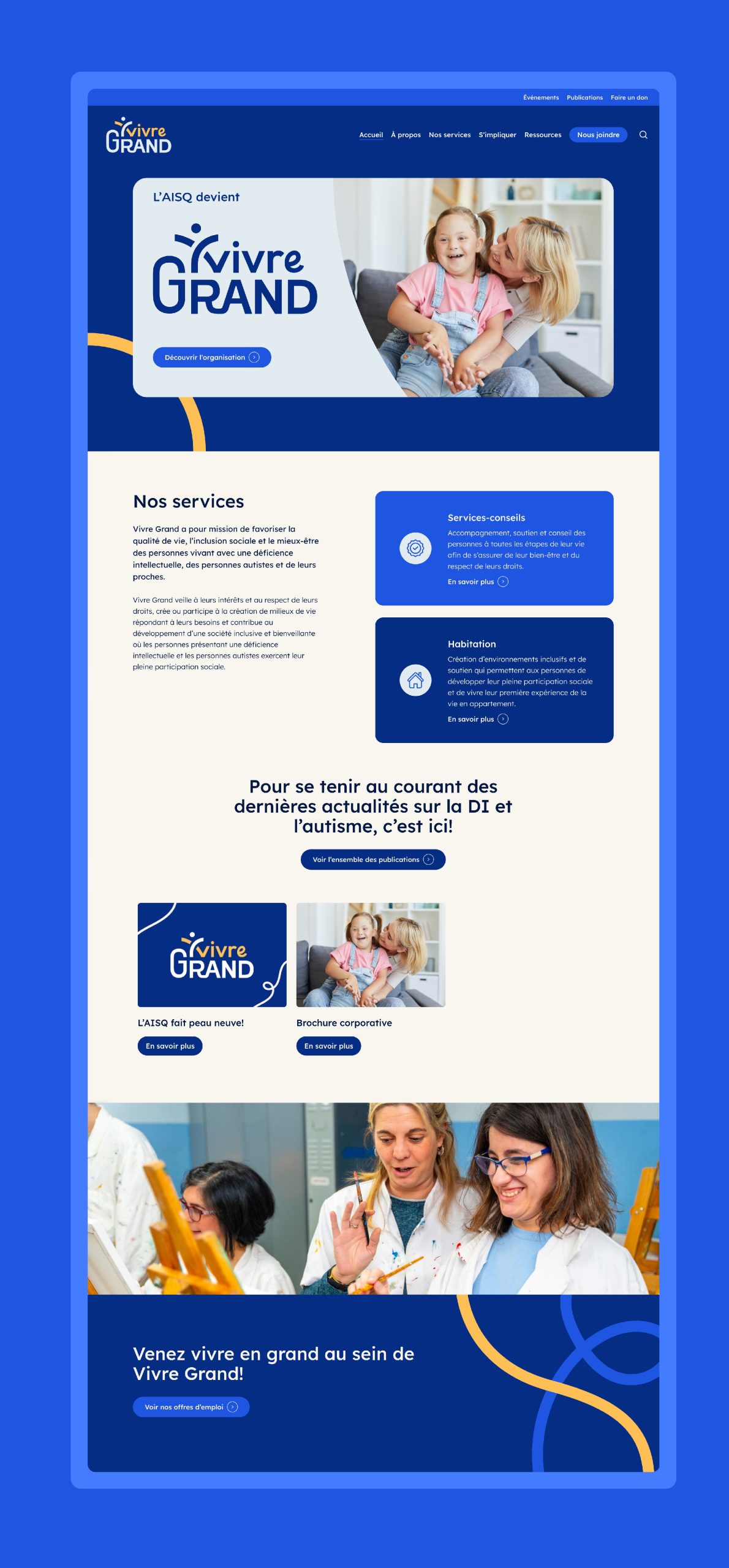 Participer à la transformation de l’AISQ en Vivre Grand a été un projet ambitieux et porteur de sens. Bien plus qu’un simple changement de nom, c’était une opportunité de raconter une nouvelle histoire : celle d’une organisation qui valorise l’inclusion sociale, le mieux-être des personnes vivant avec une déficience intellectuelle, des personnes autistes, et le soutien à leurs proches.